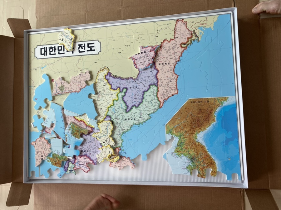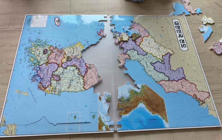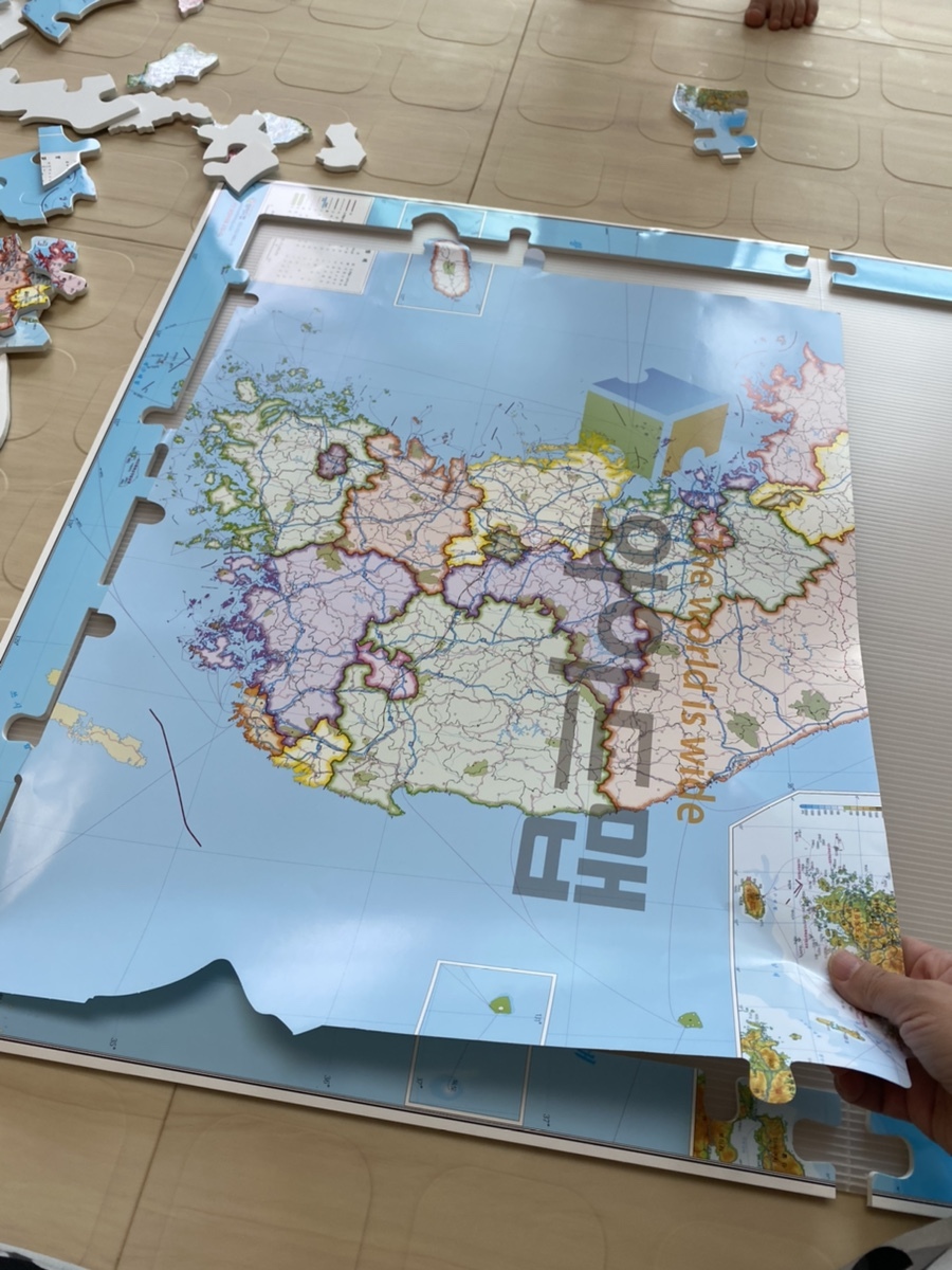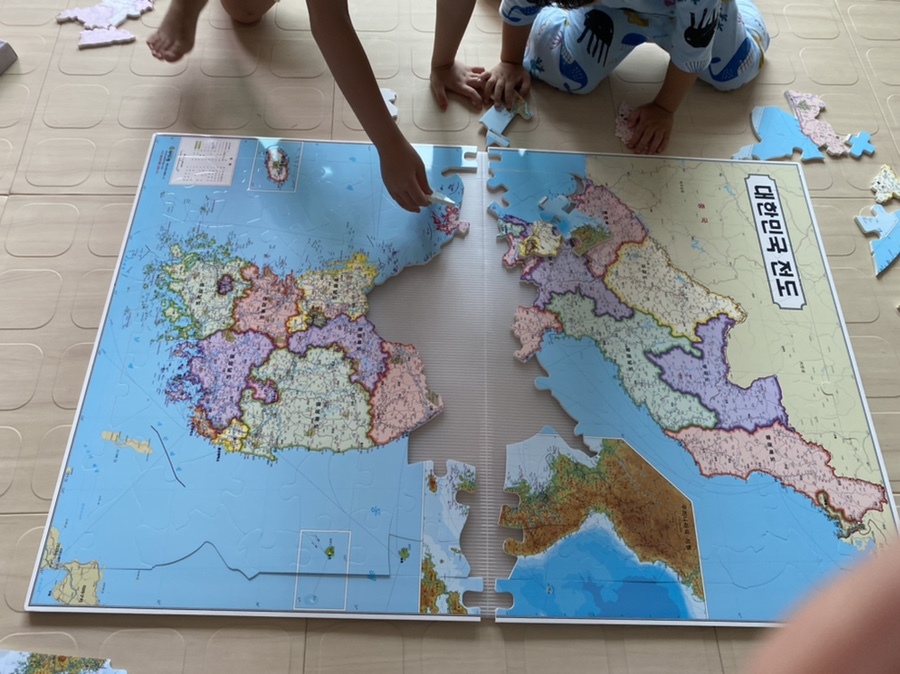 그냥 맞추면 어렵고 밑그림 지도를 넣어주면 어린아이들도 같이 맞출 수 있다.