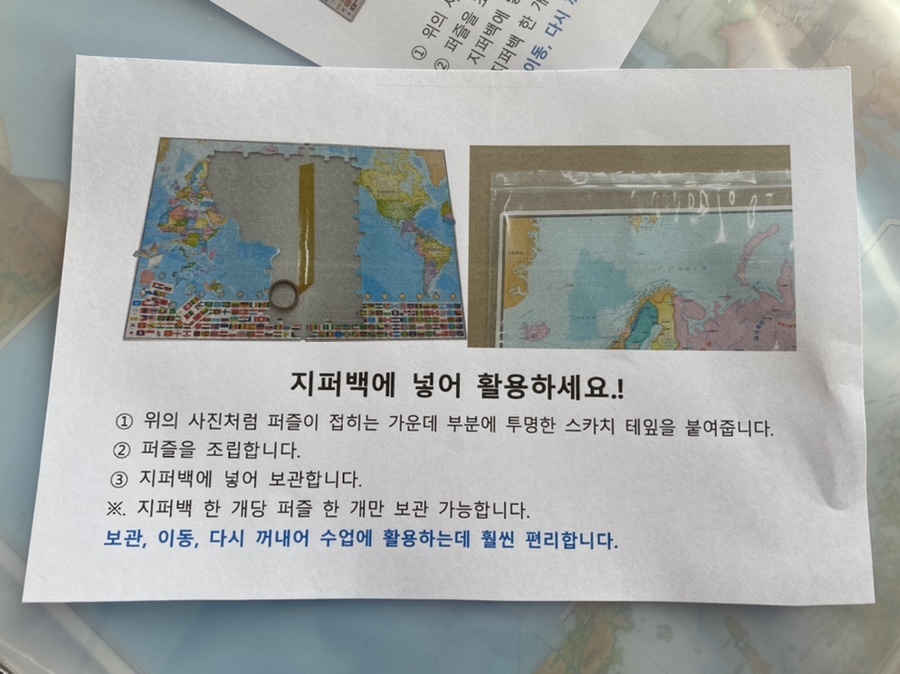 다 펼친 지도에 딱 맞는 지퍼백.. 무려 한 장에 1,980원이지만 사이즈도 딱 맞고 완성채로 보관하기 위해 두 장 구입함.ㅋ