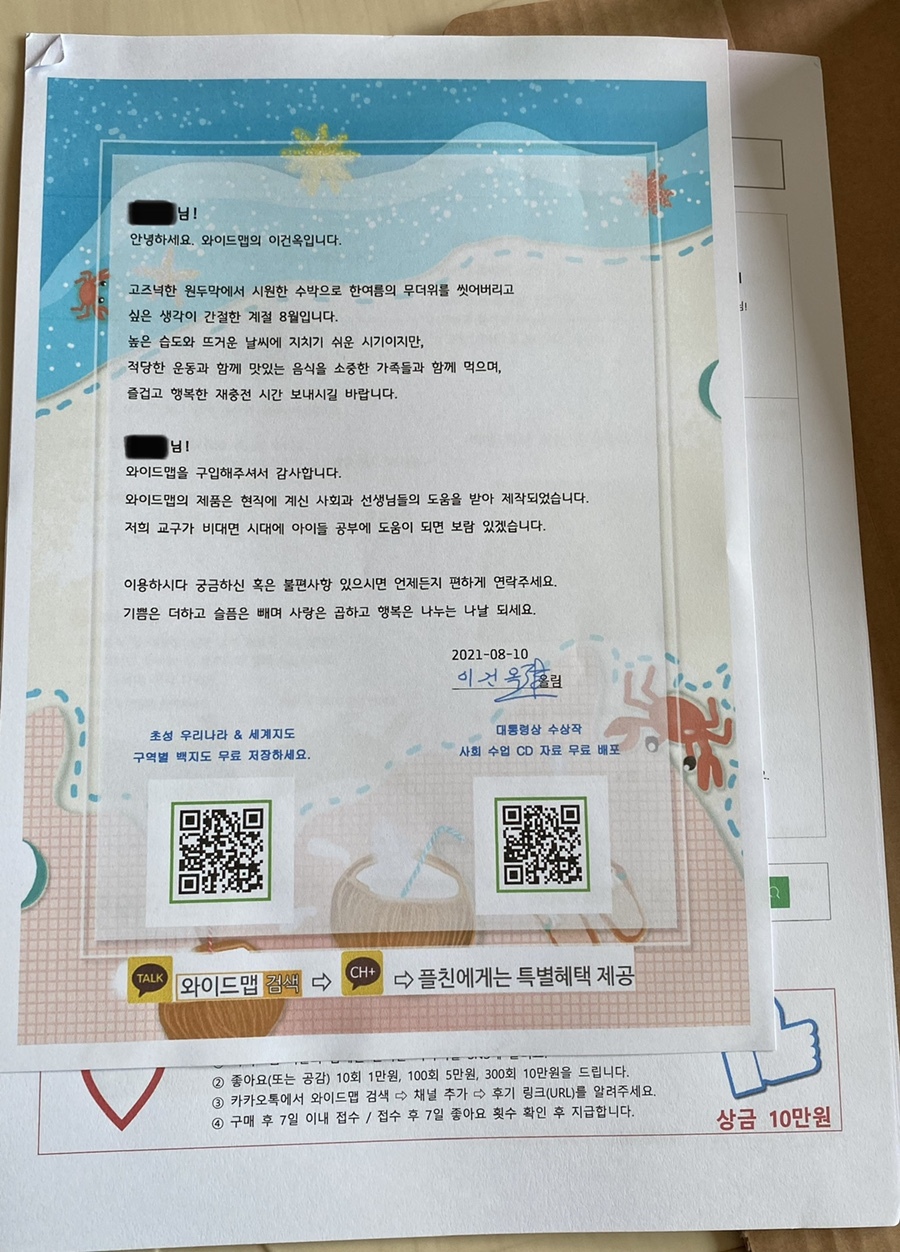 구매자 이름을 적어서 정성스러운 편지를 받고 나면 활용 방법을 설명해 준다.