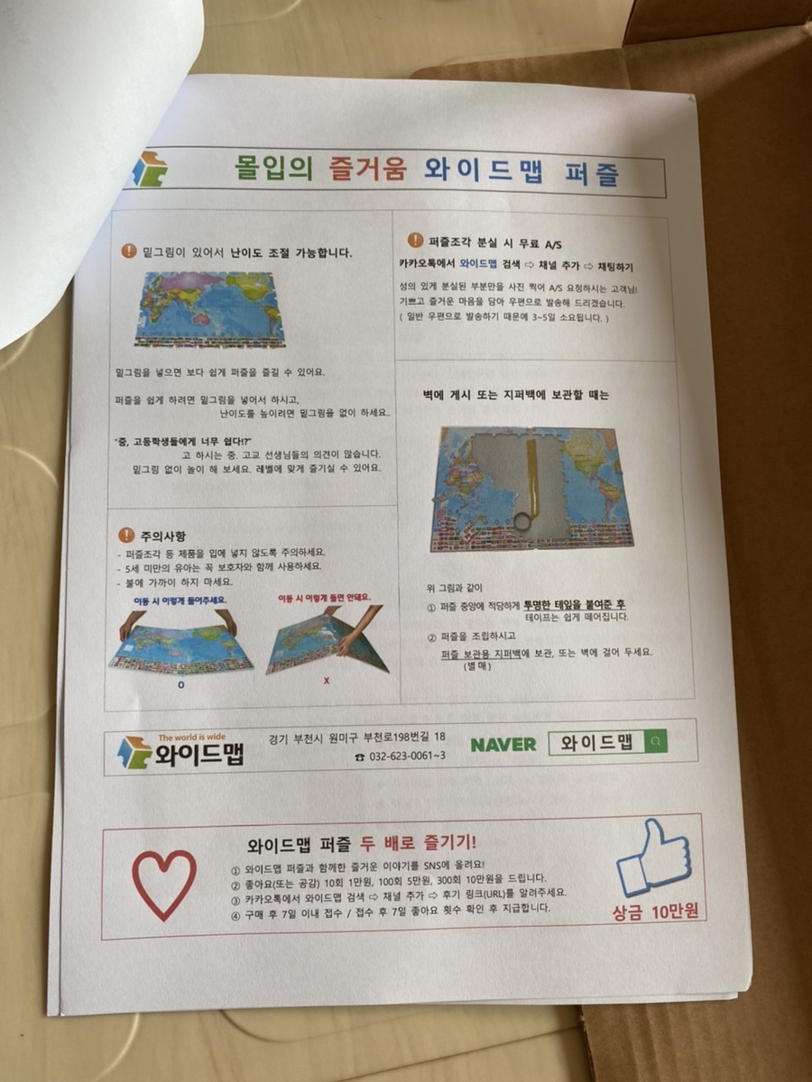 6. 분실된 퍼즐은 사진을 찍어서 요청하면 무료로 보내 준다고 함.