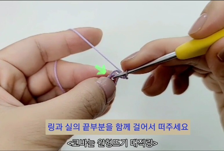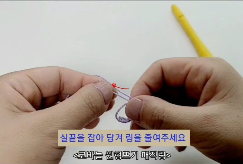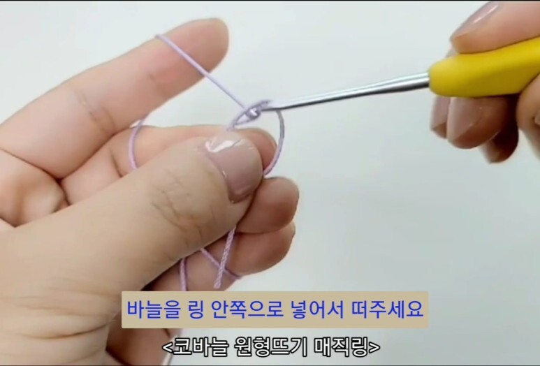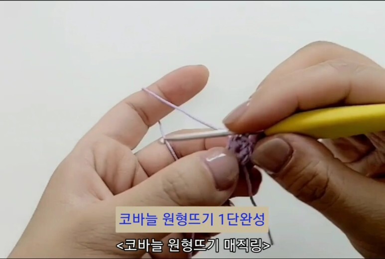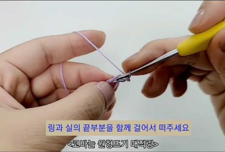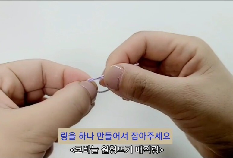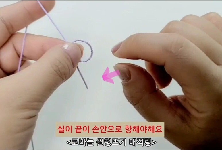 코바늘 원형뜨기의 처음 시작 부분 매직링을 뜨는 방법이에요