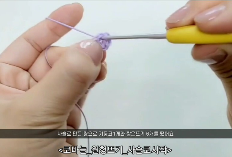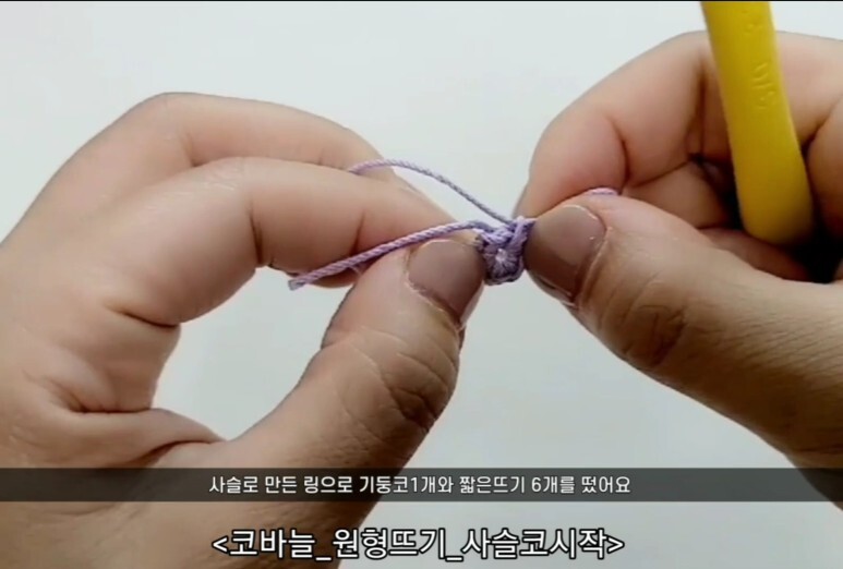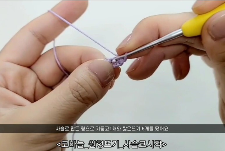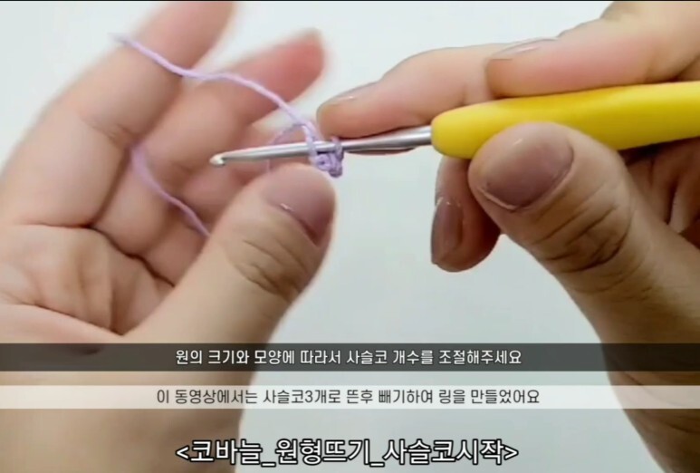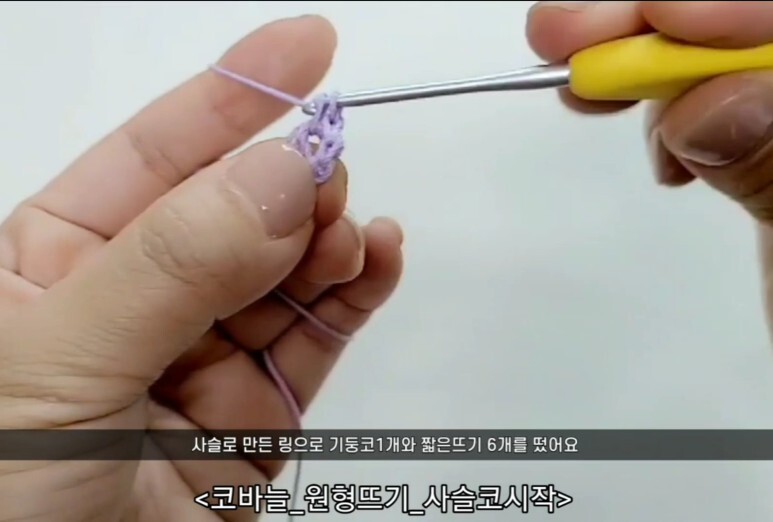 원형 뜨기의 시작 부분에서 사슬뜨기로 링을 만든 후에 뜨는 방법이에요