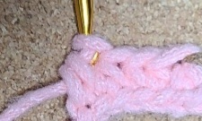 코바늘이 이전 단 또는 사슬코에 넣기 전에 바늘에 실을 한번 걸어서 아래쪽에 바늘을 넣어 다시 실을 걸어줍니다. 바늘에 3개의 실이 걸리면 모두 한꺼번에 통과해 주세요