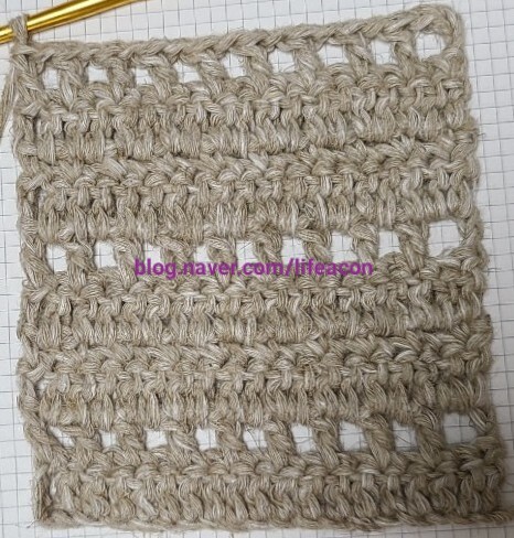 기둥코3개를 한후에 사슬코를 하나 더 떠주세요 힌길긴뜨기를 한후에 사슬코 한번 반복해주세요
